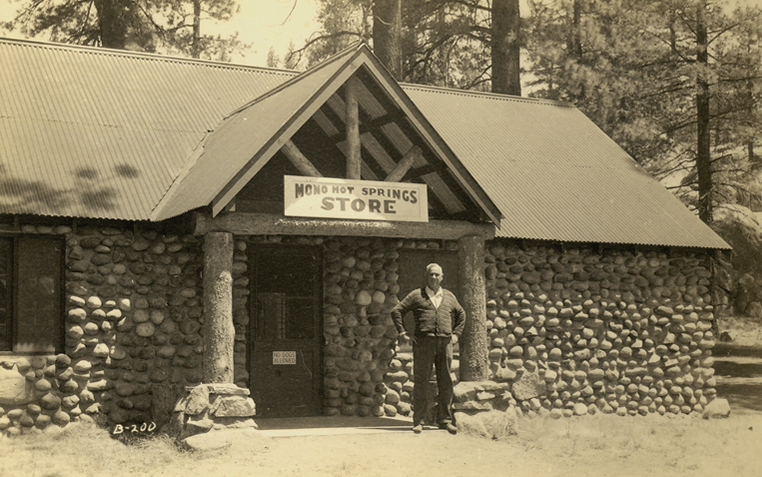 By the 1930’s tales of the rejuvenating effects of the mineral hot springs, the stunning landscapes and recreation opportunities in the area had begun circulating and attracting Californians to the area. In 1934 the Forest Service utilized the Civilian Conservation Corps (CCC) to help construct a bathhouse and several buildings on the south side of the San Joaquin River. Construction of Mono Hot Springs Resort began in 1935, under a permit from the Forest Service and the direction of Walter Hill. The Resort opened to great fanfare in 1937. Walter Hill and his family spent the following fifteen years adding a café, general store and many cobblestone cabins. In 1963, the resort was bought by the Winslow family, whom continue to run it to this day.
